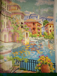 Конечно, видно не очень хорошо, поскольку канва с нанесённым рисунком. Но как-то неожиданно легко пошла вышивка, несмотря на то, что я не любитель вышивки по рисунку. Прямо с удовольствием вышивала)) Наверное, среди зимы подобное буйство красок сродни витаминам))